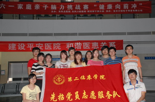 来自第二临床学院的13名先招党员志愿服务队成员在本次活动中担任“亲子大使”,他们热情的笑脸,周到细致的服务,让参赛的家长和孩子们在轻松、欢愉而又不失紧张激烈的活动中,玩出了快乐心情,锻炼了坚强意志,增强了合作和竞争意识,培养了家园间、亲子间的亲密情感, 度过了一个难忘的六一儿童节。 (陈华东)