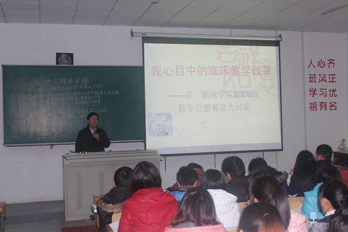 2月14日下午,第二临床学院2009级学生以“我心目中的临床教学改革”为主题,在第二教室举行了教学思想观念大讨论。