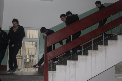 讲座结束后,全体学生回到宿舍参加了火灾疏散演练。