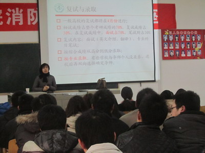 从2月下旬开始,考研学生的初试成绩陆续公布,为了使学生能够更好、更早地准备复试或进行调剂,第二临床学院提前邀请专家对学生进行辅导。阮教授根据2012年招生形势和政策的变化,从往年录取的情况、调剂的种类、信息的获取、复试和调剂中应注意的问题等方面对学生进行了辅导。讲座完毕后,部分同学还针对自己的情况进行了咨询,阮教授都一一进行了耐心解答。