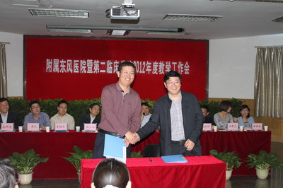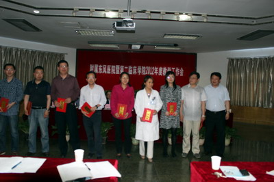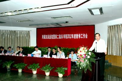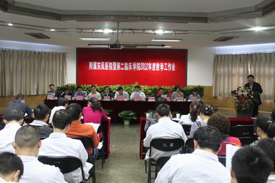 4月27日下午,湖北医药学院附属东风医院暨第二临床学院2012年度教学工作会在医院学术报告厅隆重举行。校长涂汉军,校长助理、附属东风医院院长何宏生,教务处长李国华、口腔学院分党委书记马兴国、护理学院分党委书记袁杰以及第二临床学院全体领导、教师参加了大会。会议由分党委书记、副院长孔祥清主持。