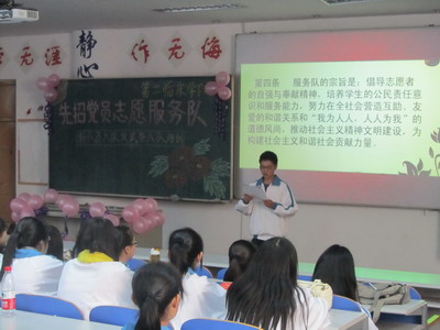 活动首先由先招党员志愿服务队理事刘力宣读服务队章程、宗旨以及新队员名单,新队员面对队旗,举起右手,庄严宣誓。随后,先招党员志愿服务队发起人曹先招向队员们讲述了先招党员志愿服务队的成长历程,阐述了志愿服务的基本内容,鼓励新队员们立志奉献、播撒爱心,把先招党员志愿服务队“自强、奉献、友爱、进步”的精神发扬光大。最后,志愿服务队骨干曹先招、周隆书、黄开禹、单强分别对新队员进行志愿服务知识、技能培训。