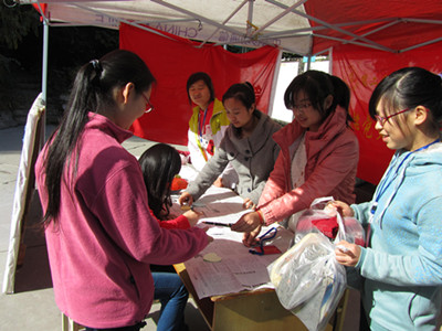 在为期两天的捐赠活动中,服务队分别在汇德公寓、学府苑门口和新校区8号楼门前设点,为贫困山区家庭募捐衣物。此活动受到了全校广大师生的大力支持,前来捐赠的爱心人士还纷纷在募捐点的留言板上写下对山区人民的祝福。