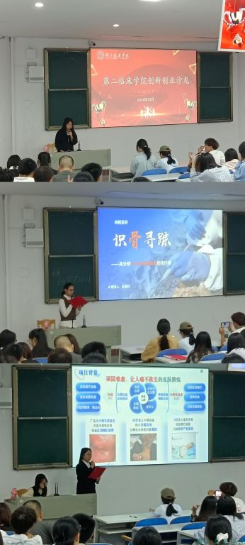 “肝为人先”“愈创卫士”等七支团队学生负责人依次进行了项目汇报,为同学们进行了案例分享。团队负责人就如何选择项目和制作赛事PPT,并对路演和商业计划书的撰写进行了详细的指导。现场气氛热烈,同学们纷纷表示很有收获。