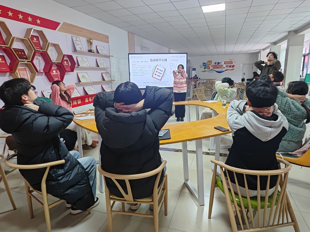 培训最后,来自焕“染”一新创新创业团队的队员带领各班心理委员做肩颈康复操,帮助缓解期末学习压力。(审核 陈立)