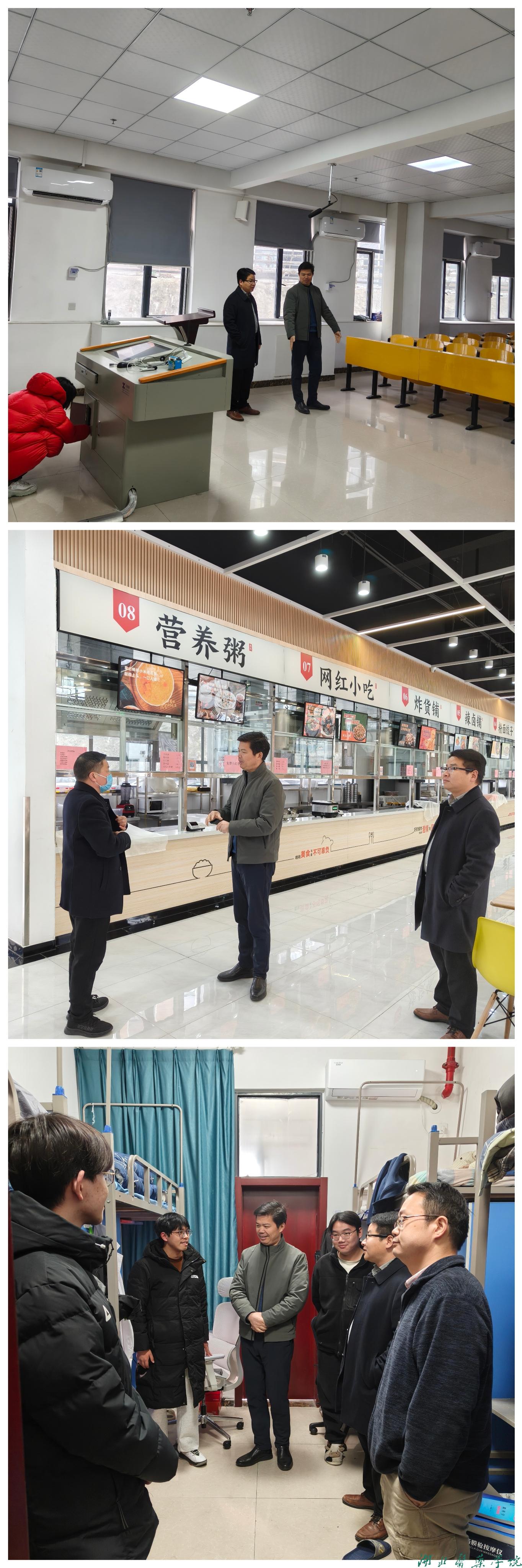 当日下午,师贞明、陈俊率教职工对东风校区进行安全大检查,重点巡查了教学楼教室设备运行情况,确保教学设施正常使用;深入食堂后厨、用餐区域,细致排查食品安全、用电用气及消防隐患;走访学生宿舍,了解学生返校后的生活需求,叮嘱学生注意宿舍用电安全,强化防范电信网络诈骗意识。