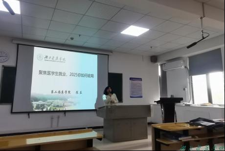 第二临床学院陈立副书记以“聚焦医学生就业,2025你如何破局”为题,从“先就业后择业”为切入点,从就业形式的变化、就业与“二战”的利弊、就业本质的探究三个方面展开,通过详实的数据分析,指出医疗人才需求的结构性变化,强调毕业生需立足自身优势,把握基层医疗、专科领域等新兴机遇。针对“考研二战”与“直接就业”的选择困境,陈立建议学生综合评估个人能力、家庭支持及职业目标,避免盲目跟风,并提醒学生“就业的本质是个人价值与社会需求的契合”。
