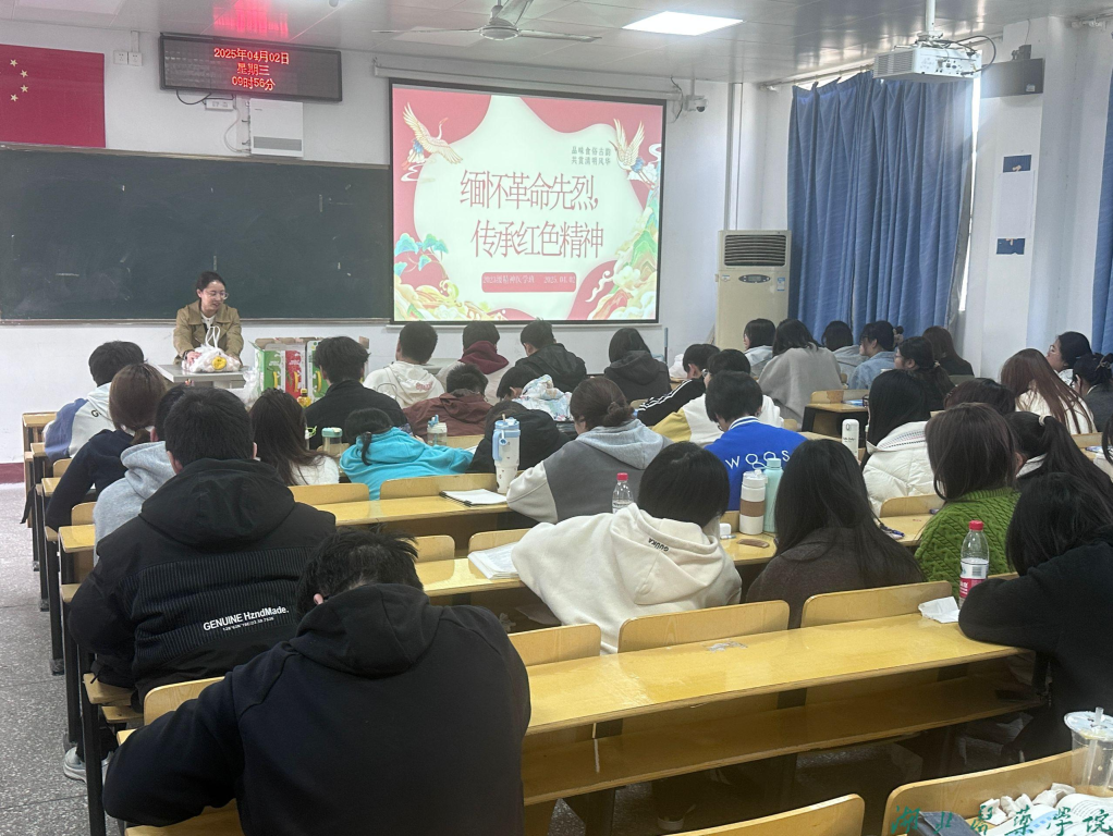 本网讯(通讯员 车婉欣 胡芳) 2025年4月2日,2023级精神医学班在5616教室举办了一场以“传承清明文化,缅怀革命先烈”为主题的班会活动。活动由辅导员胡芳老师主持,通过文化背景讲解、云端祭扫和民俗体验等环节,引导同学们在追思中传承文化,培养正确的生死观与家国情怀。