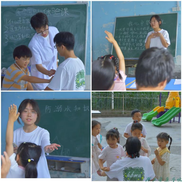 服务队充分发挥医学院校的专业优势,精心设计了“生命健康科普”、“中医药文化启蒙”、“急救知识小课堂”等特色教学模块,将复杂的医学知识转化为通俗易懂、趣味盎然的课堂内容:在“生命健康科普”中,带领孩子们探索人体奥秘,认识常见疾病;在“中医药文化启蒙”环节,介绍神奇的中草药、讲述中医故事,让孩子们感受传统文化的魅力;在“急救知识小课堂”上,则教授了如止血包扎、海姆立克急救法等实用急救技能。这些课程不仅激发了孩子们对医学知识的浓厚兴趣,更将医学专长转化为赋能成长教育的独特力量,有效促进了孩子们综合素质的提升。