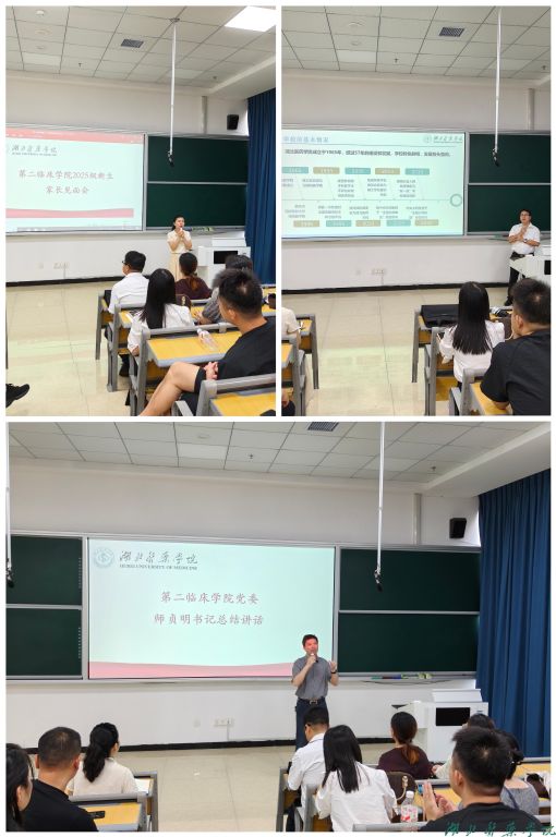 本网讯(通讯员 李占秋)9月5日上午,第二临床学院在公卫大楼一教室召开2025级新生家长见面会。第二临床学院党委书记师贞明、副书记陈立、副院长陈俊、各科室负责人、新生辅导员老师和新生家长参加了本次会议。此次见面会由陈立主持。