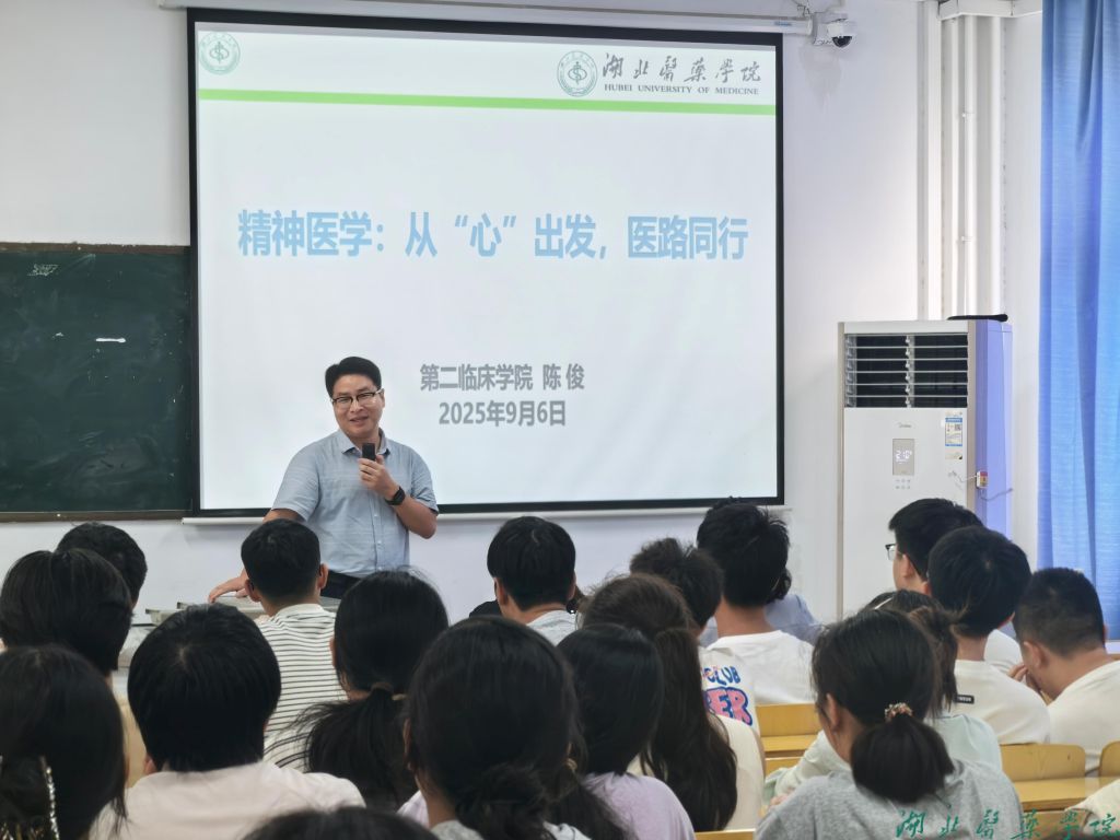 本网讯(通讯员尚静)近日,第二临床学院为2025级精神医学专业全体新生举办了一场主题为“从心出发,医路同行”的入学思想教育专题讲座。本次讲座旨在引导新生们深刻认识精神医学专业的特殊性与崇高使命,系好大学生涯的“第一粒扣子”,为成长为德才兼备的优秀精神卫生人才奠定坚实的思想基础。讲座由学院副书记陈立主持,副院长陈俊主讲,各办负责人、辅导员及全体2025级精神医学新生参加了会议。