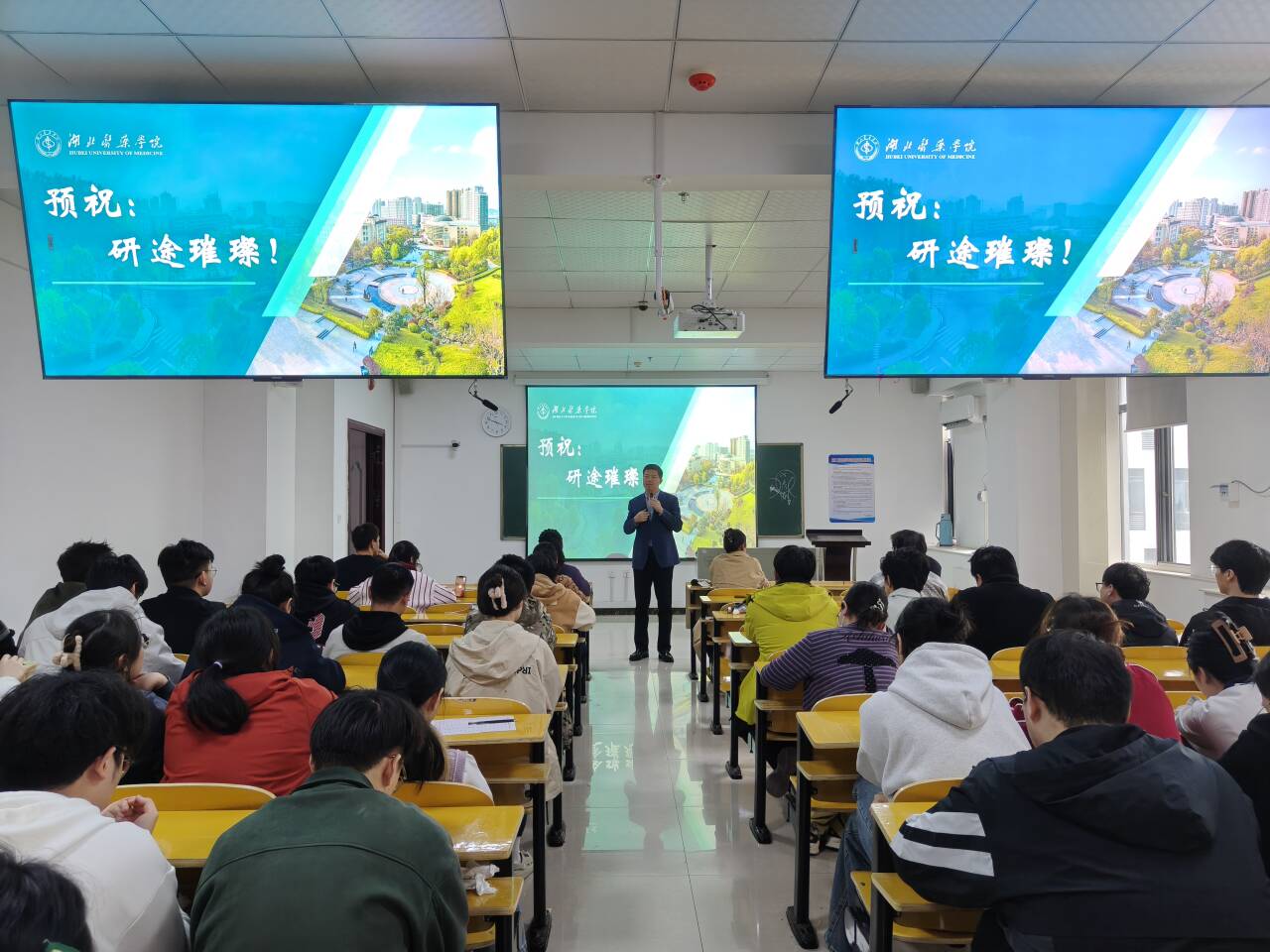 本网讯(通讯员:李占秋)为帮助学子明晰考研方向,科学备考,10月15日下午,第二临床学院特邀研究生院招生就业办主任陈旭,为同学们带来一场全面而实用的考研报考指导讲座。讲座围绕国家政策、学校政策、院校选择及网上报名四个核心维度展开,为处于备考关键期的学子提供了权威指引与有力支持。讲座由党委副书记陈立主持。