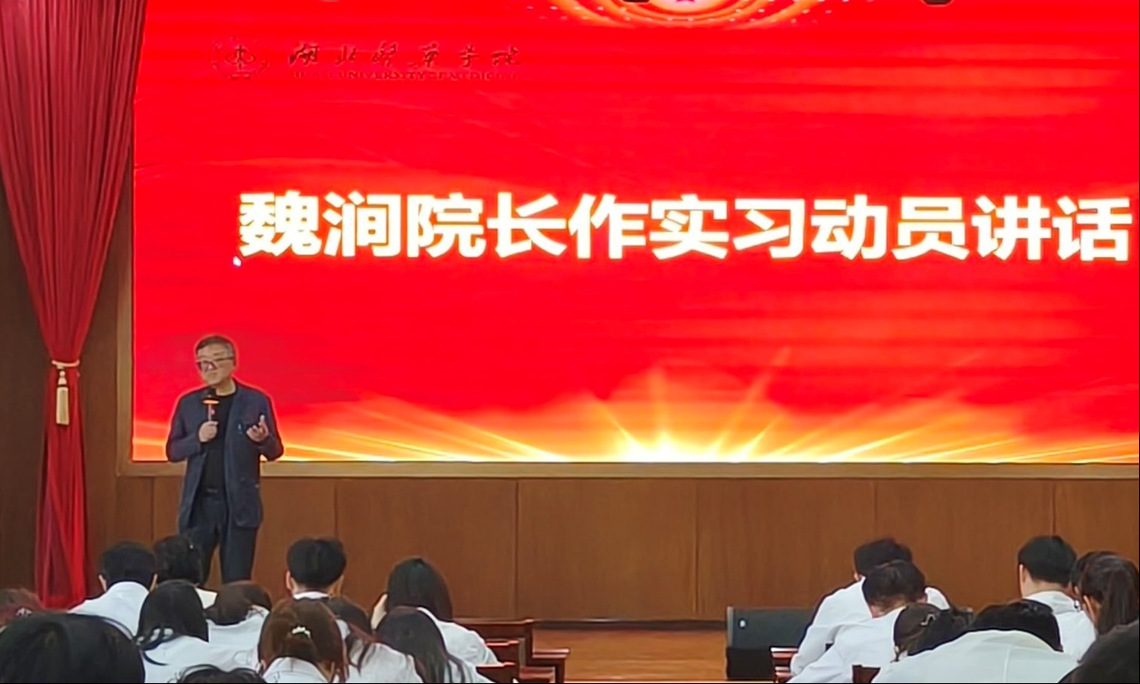 在动员讲话中,魏涧指出,新时代医学人才培养,既要夯实扎实的医学专业基础,也要主动拥抱科技变革。要坚持将传统医学知识与现代AI技术相结合,主动学习智能诊断、医学大数据、临床辅助决策等前沿知识,在实习中善于运用信息化、智能化工具提升诊疗效率与临床思维,努力成长为兼具扎实医学功底与现代科技素养的复合型医务工作者。