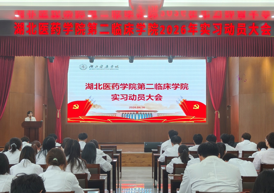 本网讯(通讯员尚静)为明确实习目标、强化安全意识、助力医学生顺利完成从理论学习到临床实践的角色转变,4月16日下午,第二临床学院在国药东风总医院科教科报告厅隆重召开2026年实习动员大会。学院院长魏涧、学院党委副书记陈立、教学办、学工办老师及全体2026级实习生参加会议,会议由陈立主持。